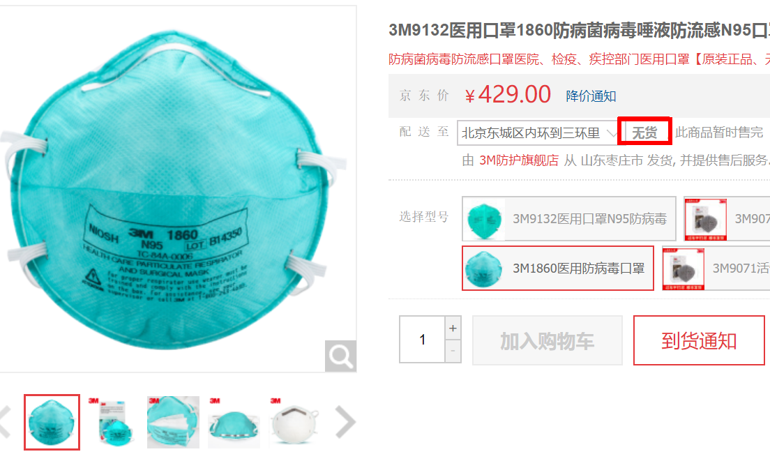 1月21日,成都有一家作为品牌口罩经销商的商家,把所有的医用外科口罩以及N90和N95型口罩全售罄了。到22日下午3点的时候,即便是最为普通的无纺布一次性口罩也变得没有库存了。库房当中存有1200个耳挂式防尘口罩,其单价为2.5元。经销商表明了,这种防尘口罩没办法防止飞沫,然而顾客依旧陆陆续续前来购买,还没到傍晚便也卖光了。他们进行补货至少需等年后物流恢复。