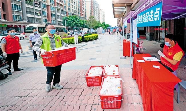 明珠社区处于金平区光华街道,封控区、管控区以及防范区被明确清晰地划分出来,封控区实施物资配送到家的举措,由工作人员以无接触的方式进行送达,管控区对居民加以引导,使其错峰取物,以此防止人员出现聚集的情况,全市的机关干部快速下沉至一线,对基层防控力量予以充实。