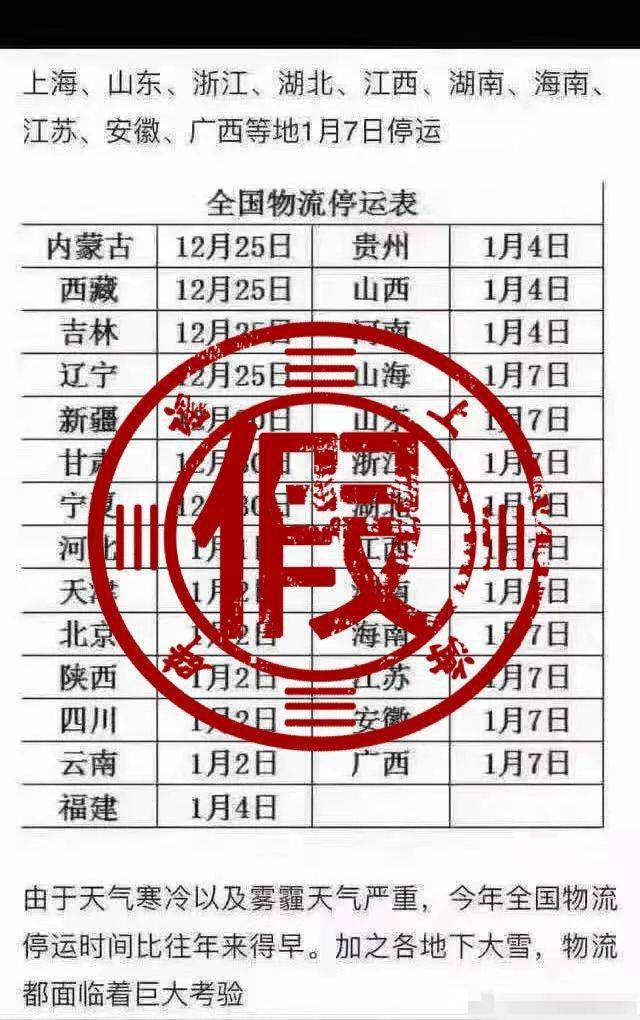 每逢每年的年底之际,一张所谓的“全国物流停运时间表”便会于朋友圈之中不停地刷屏,今年出现的这张在1月中旬就呈现出停运状态的表格,与2月才正式开启的春节假期全然无法对应得上,明显就是假的,然而商家们却依旧急切地忙着对其进行转发,从而促使大家去备货,在这背后究竟隐匿着怎样的玄机呢?