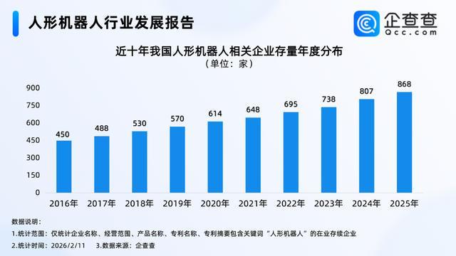 2026年央视马年春晚,多家人形机器人企业同台亮相、超200台机器人参演12个节目,从武术竞技到舞台伴舞,从主会场到分会场,成为全场最亮眼的科技符号。这场全民级“科技春晚”迅速点燃消费与资本热情:平台机器人搜索量环比暴涨超300%,宇树科技等企业上市话题刷屏。数据显示,我国在业存续人形机器人相关企业已达870家,2025年专利申请量近千项创五年新高,一个兼具技术实力、市场活力与全球竞争力的新兴产业集群,正在中国加速成型。