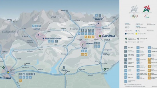 意北部分布着米兰、瓦尔泰利纳、科尔蒂纳、费耶美山谷这四个赛区,最远两端之间的距离超过250公里诶。以前冬奥会一直追求场馆紧凑,然而这次却特意进行了分散处理呢。为达成这种状况,组委会还专门开设了赛区间的高铁专列,其最短车程居然是1小时40分钟呃,而且那媒体班车每天发车可是多达50个班次呀。