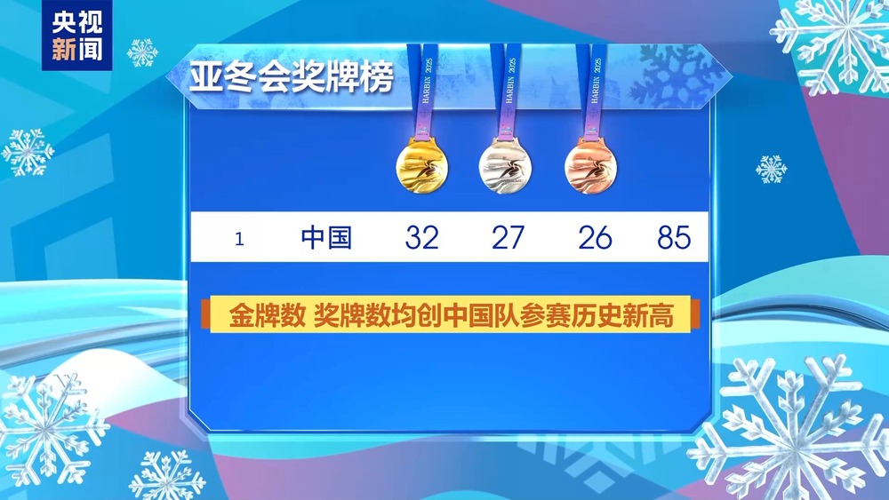 于亚冬会最后一个比赛日,冰雪健儿以三枚奖牌作收尾,虽未再增添金牌,然而女子冰壶所获银牌以及男子冰壶、女子冰球所获铜牌同样有着沉甸甸之感。在本届亚冬会上,中国队获取了32金27银26铜总计85枚奖牌,金牌数量与奖牌数量双双把历史纪录给打破,此份成绩单才是真正具备值得刷屏的特质。