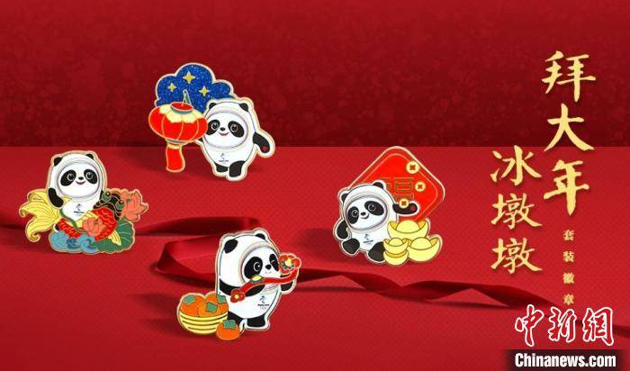 要是觉得一枚徽章不太够,冰墩墩还预备了成套的“花式祝福”。有一套4枚的春节祝福徽章,它们分别有着寓意吉祥、寓意如意、寓意招财进宝、寓意福运连绵的含义。每一枚徽章借助冰墩墩不同的运动姿态,再并合中国传统的吉祥符号,既呈现出了冬奥项目的风采,又传达出了满满的节日喜气。