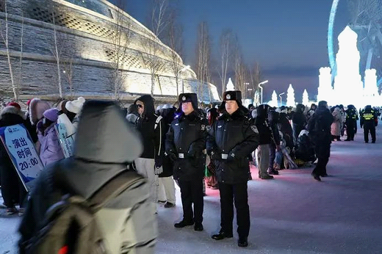 哈尔滨冰雪节开幕式有着3400名警力,设有70余处岗位,且岗位上的人员24小时在岗。该系列安保数字背后展现出的安全感,是市民游客能够看见的。当夜空被璀璨冰灯所点亮时,那群身着藏蓝色服装的守护者,运用最严密的勤务模式,为冰雪狂欢筑起了一道虽无形但坚实的安全屏障。