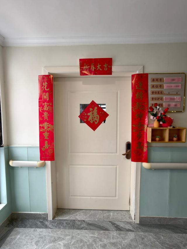 除夕一大早,龙龙和父亲便提着爷爷爱吃的糕点来到康养中心。马年新春的氛围扑面而来,走廊里挂满彩灯,桌上摆着大大小小的红色小马,每户老人的门上都贴了春联。工作人员穿梭忙碌,筹备着新春活动,院内人来人往,满是年味儿。