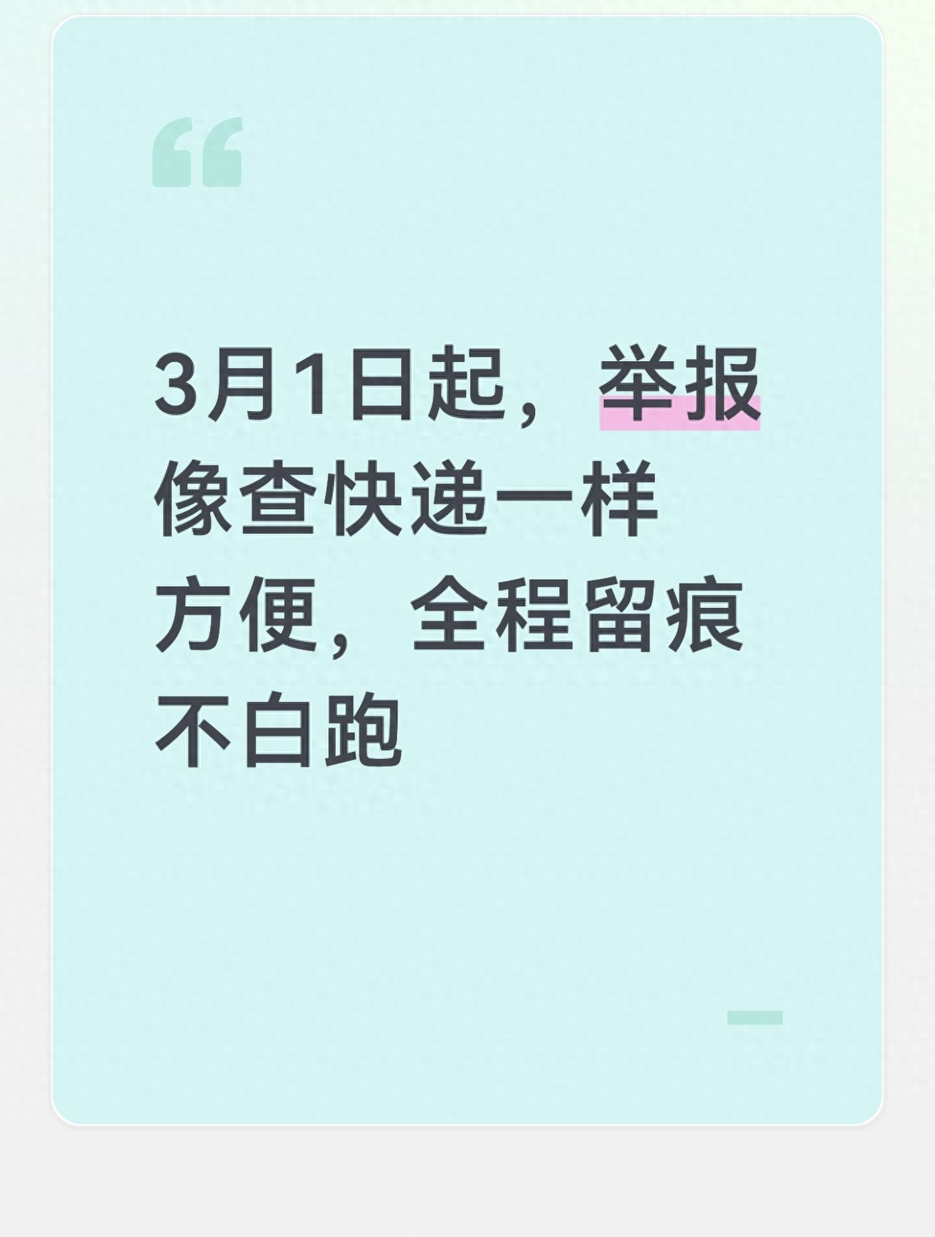 从3月1日开始,举报这一事情终于有了“官方指引”,再也不必担忧毫无音讯、信息被泄露,新规定将每一个步骤都清晰展示出来,与每一个人都紧密关联。