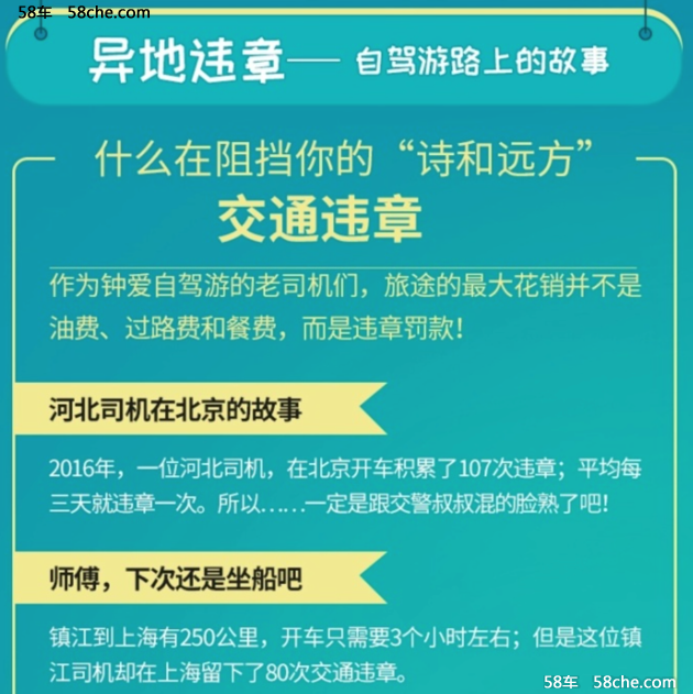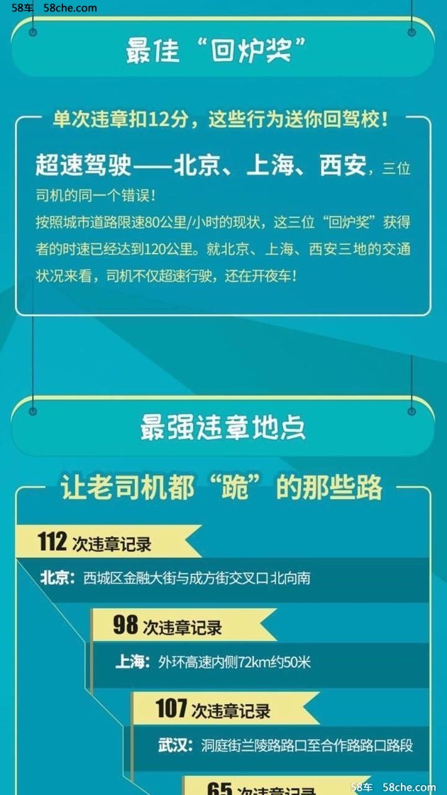要查询58违章的数据图,还提到,一些二三线这个城市的交通监管,正迅速朝着一线城市看齐,摄像头的密度大幅增加。以前在小县城能随便停车的习惯,现在已经行不通了。司机的驾驶水平以及规则意识,正被越来越智能的监管系统进行全方位考验。