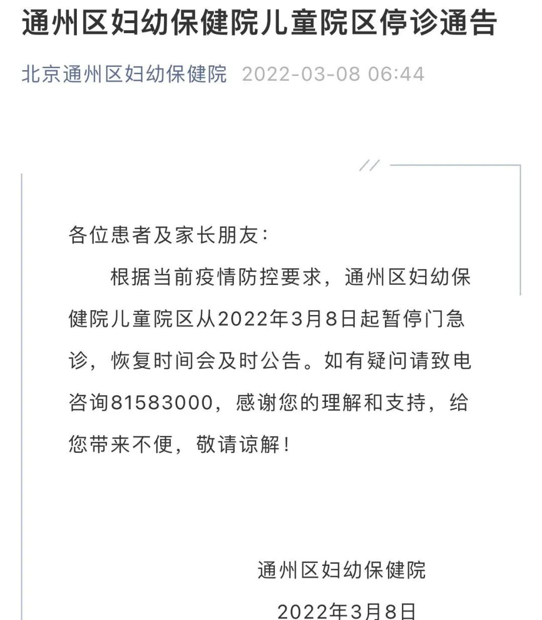 3月7日那一天,北京海淀区出现了1例新增的本土确诊情况。朝阳区接到了通州区所通报的,在妇幼保健院就诊的一家当中有两名儿童初筛呈现阳性,而这两名儿童居住于万科青青家园。就这样,通州区妇幼保健院儿童院区从3月8日开始暂停了门急诊。天津西青区有一个建筑工地发现了4例阳性,当下已经全面实施封控。西安在3月7日新增了5例确诊,全市范围内存在8个中风险地区。