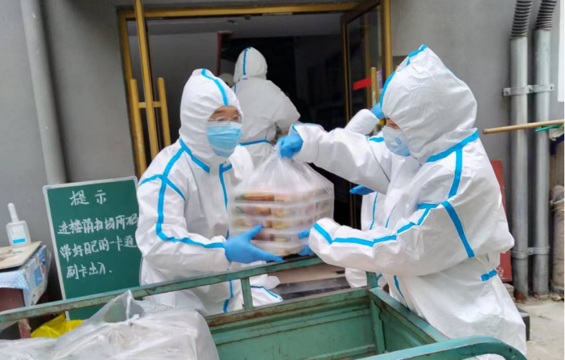 穿上防护服他们成了送饭的临时外卖员