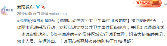 云南省卫生健康委员会所作的通报表明,截止到7月4日24时这个时间节点,全省范围内现存的确诊病例数量为64例,其中属于本土的确诊病例数量是3例,而从境外输入的确诊病例数量为61例。针对出现的新增情况这种态势,瑞丽迅速即刻启动了突发公共卫生事件Ⅲ级响应。