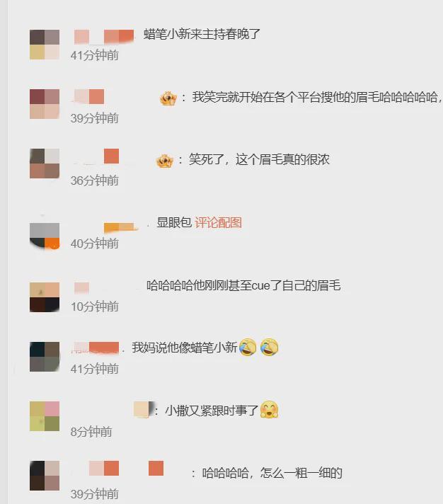 2026年央视春晚开播,撒贝宁的眉毛再上热搜,有网友表示“今年的眉毛好像还是有点像蜡笔小新诶”。