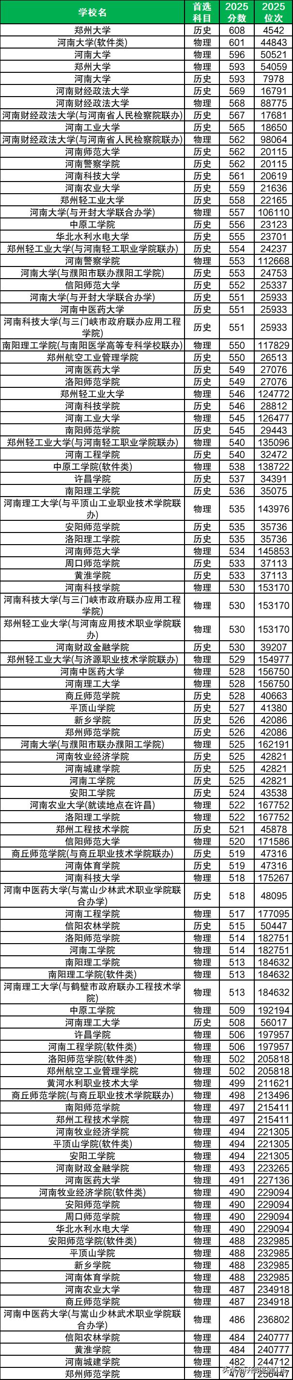 更具参考价值的是位次而非分数,需明确郑州大学历史类在4542位以内,河南大学历史类596分所对应的位次也得查得一清二楚。物理类中,郑州师范学院476分对应的是256447位,而民办压线院校的位次在34万之后,不同位次段均有所对应的院校可供选择。