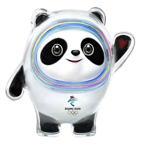 设计团队为传统熊猫添上冰凌铠甲,此创意源于北方孩童常食得糖球,冰凌铠甲仿若宇航服又似冰雪装备,头盔上彩色光晕造型灵感源自国家速滑馆冰丝带,流动线条象征冬奥赛道。