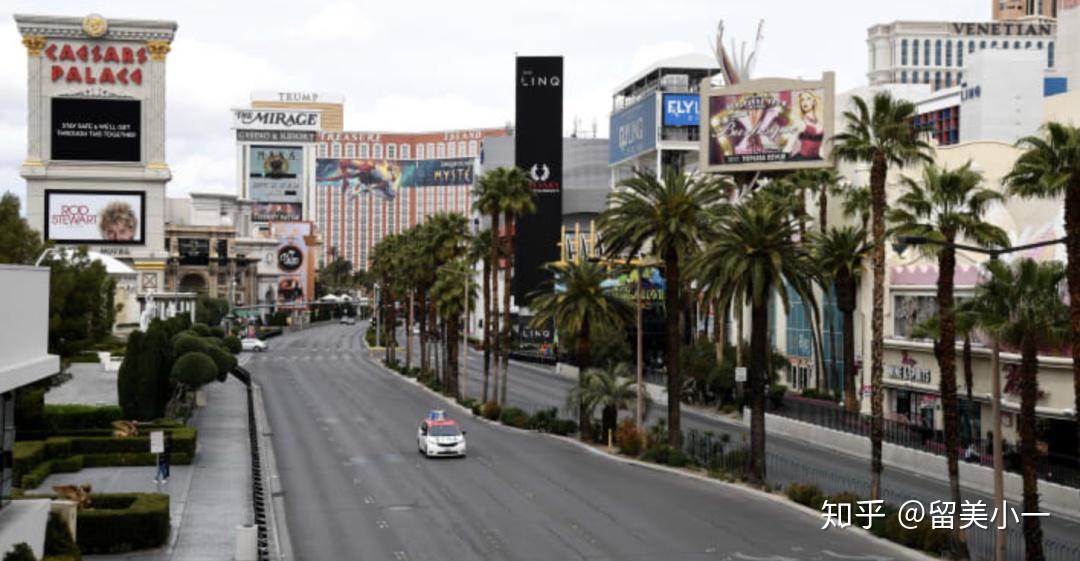 内华达州下达了关闭全部酒店、赌场以及餐厅的命令后,拉斯维加斯大道陷入了死寂之中。凯撒宫前面的喷泉被抽干了,游戏区域全都关闭了,这个从来不夜的城市失去了往昔的喧嚣。McCarran国际机场大部分的登机口都关闭了,航班流量急剧暴跌。