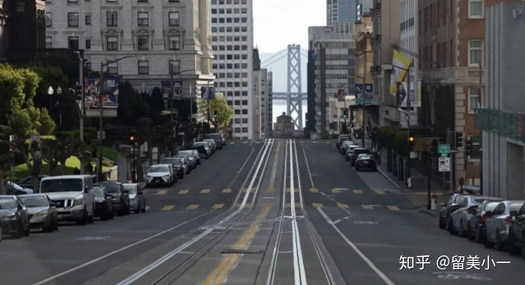 在3月17日的时候,旧金山那具有标志性的加州街呈现出空无一人的状态,平常时候满载着游客的缆车停止了运营,在这座作为科技之都的城市街道上,仅仅有偶尔驶过的属于必要行业工作者的车辆,曾经挤满了共享单车的自行车道,当下变得空空荡荡的。