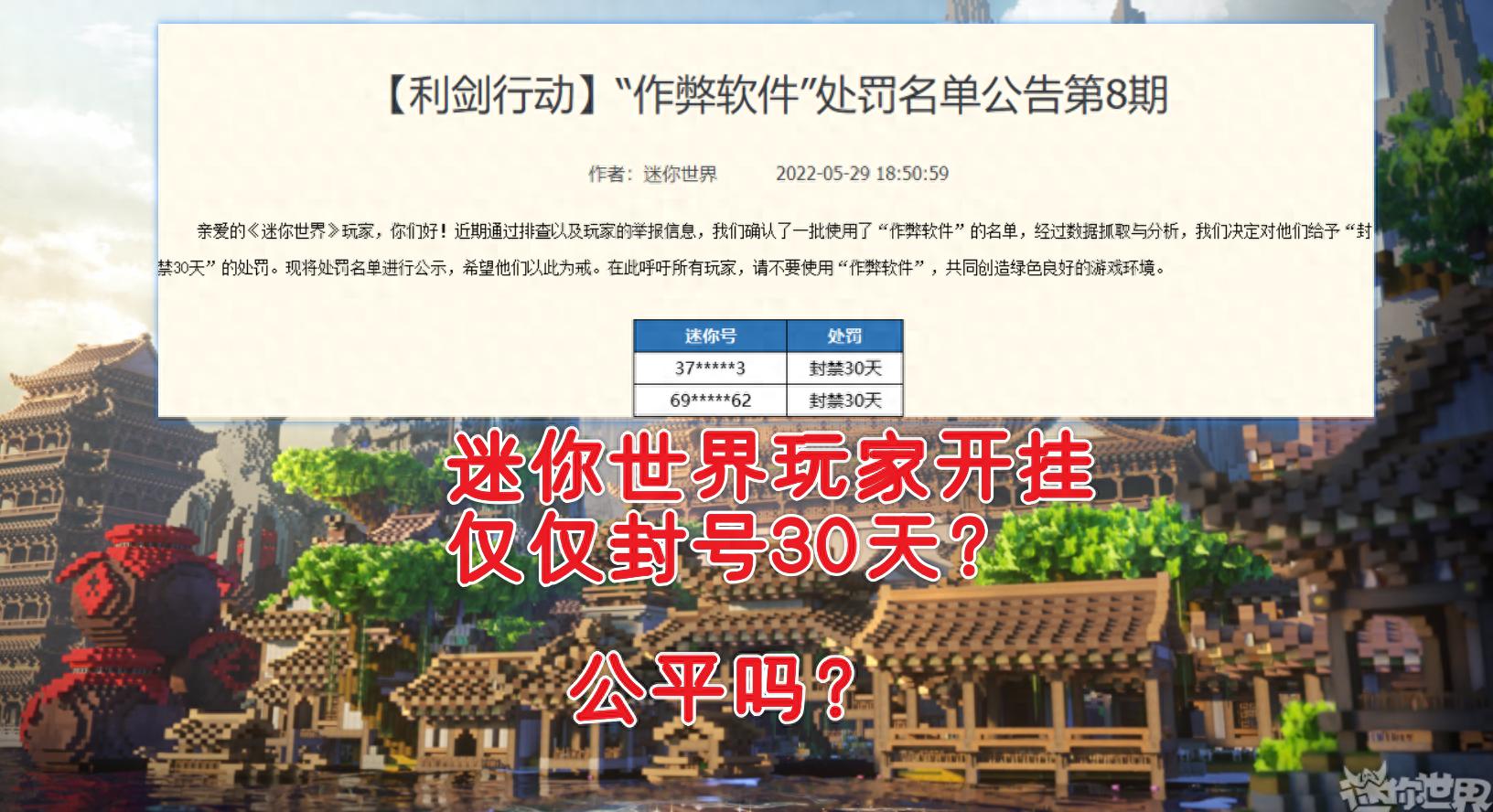 游戏被封号30天,究竟算是惩罚,还是属于纵容呢?迷你世界此次的操作,致使许多一直秉持公平竞技的玩家,一下子就炸开了锅!